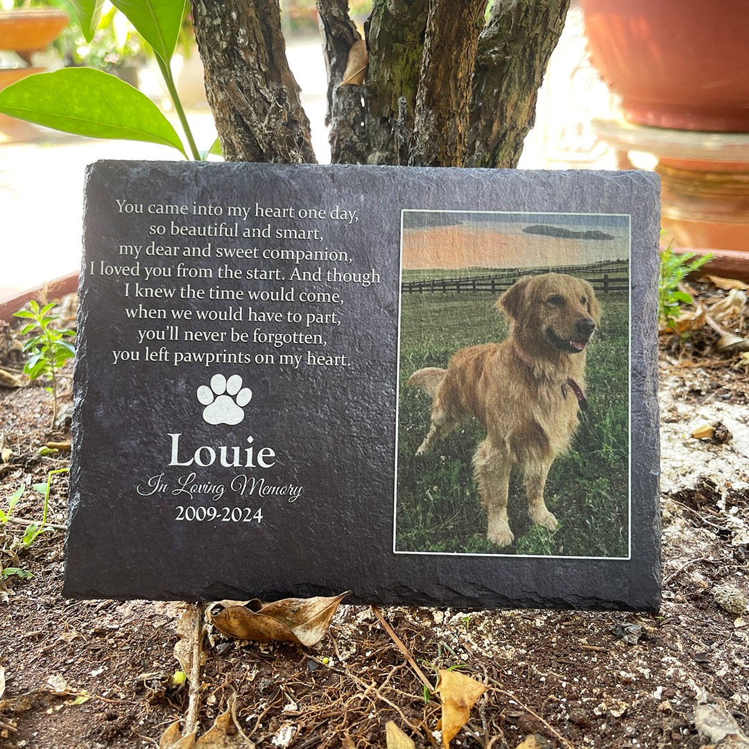 Dog remembrance gifts are items created to remember and honor the memory of a beloved pet who has passed away. These gifts serve as a heartfelt remembrance of a devoted friend who brought love and joy into someone's life and frequently include meaningful words, paw prints, and images of the dog. There are many sympathy gift for loss of dog to pick from, including keepsakes, jewelry, home decor, and memorial stones. These items allow pet owners to maintain a connection with their animal companion even after their passing. They also reduce the sorrow of loss and offer solace in trying circumstances. The memory of a beloved pet can be honored with memorial gifts for dogs.